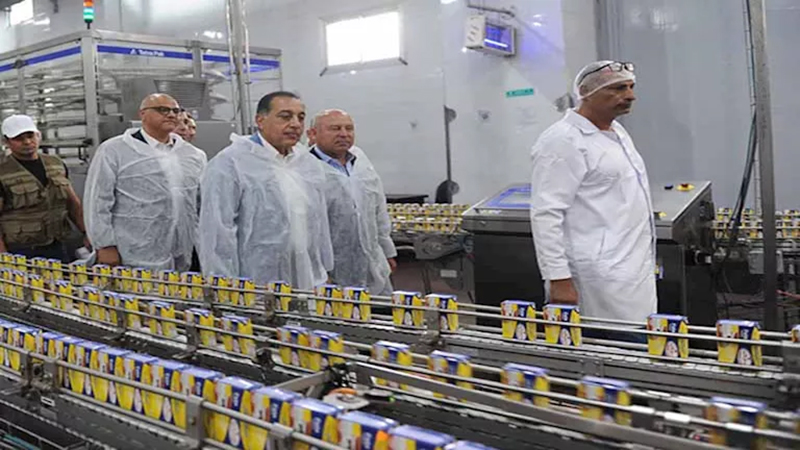 وخلال جولته بالمصنع، تعرف رئيس الوزراء على مراحل التصنيع المُختلفة وخط الإنتاج المُتكامل بمصنع “عبور لاند ٢” المُتخصص في صناعة الجبن الأبيض، حيث تم مشاهدة مراحل الانتاج، والبسترة، والترشيح، وإضافة الملح وغيره من المكونات، ثم مرحلة اللبن المُركز ودفعه نحو مرحلة صناعة الجبن، كما تم تفقد صالة الإنتاج، والمرور على ماكينات “التترا باك”، وماكينات التجميع، والتغليف، والطباعة، ومعرض منتجات الشركة المعدة للسوق المحلية والتصدير.