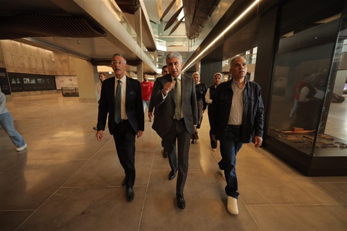 وقد رافق الوزير خلال هذه الجولات كل من الدكتور أحمد غنيم الرئيس التنفيذي لهيئة المتحف المصري الكبير، والأستاذة رنا جوهر مستشار الوزير للتواصل والعلاقات الخارجية والمُشرف العام على الإدارة العامة للعلاقات الدولية والاتفاقيات بالوزارة، والدكتور عيسى زيدان مدير عام الترميم ونقل الآثار بالمتحف.