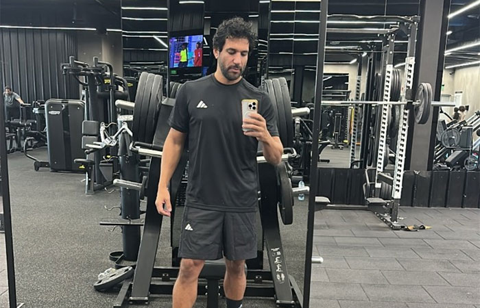 وظهر حسن الرداد في الصور من داخل الجيم، أثناء مرانه اليومي.