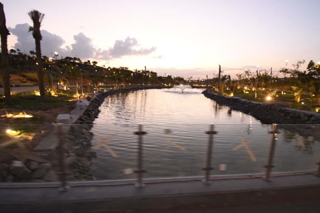 وتجول المهندس شريف الشربيني، بمختلف مكونات المشروع، بداية بالمنطقة الاستثمارية، ومشروع الأرينا، حيث تقع المنطقة الاستثمارية على مساحة 131000م2 وتطل على بحيرة عين الحياة وتضم ( 12 مطعما – 4 مولات تجارية – 4 جراجات للسيارات ) ومن خلفها منطقة تسمح بإقامة العديد من الاحتفالات الرسمية الكبيرة بها المسرح الرومانى والنافورة المائية وأعمال تنسيق موقع، بالإضافة إلى منطقة المغامرة وبها عدد من المباني الخدمية والبحيرات والزراعات.