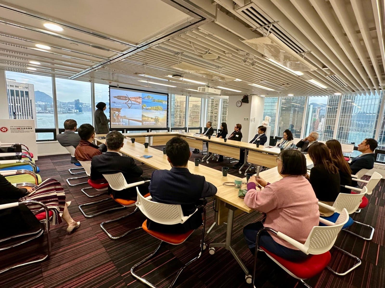 وفي لقائها مع مسئولي هيئة الاستثمار بهونج كونج؛ استعرضت نائب الوزير فرص الاستثمار السياحي في مصر ولاسيما في مجال الفنادق، كما قدمت عرضاً تقديمياً استعرضت خلاله المقومات والمنتجات السياحية المتنوعة التي يتمتع بها المقصد السياحي المصري والتي تلبي كافة أذواق السائحين من مختلف الشرائح المختلفة من السائحين مما يفتح آفاقاً عديدة للاستثمار والجذب السياحي لمصر.