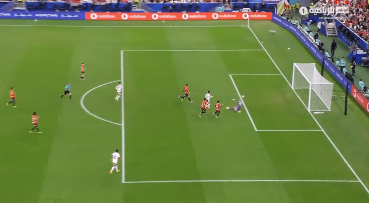 الدقيقة 41: ياسين مرعي، لاعب منتخب مصر، يهدر الهدف الأول للفراعنة، بعد عرضية من إسلام عيسى، قابلها ياسين مرعي برأسه ووجهها ولكن مرت بجوار القائم الأيسر لحارس مرمى منتخب الإمارات.