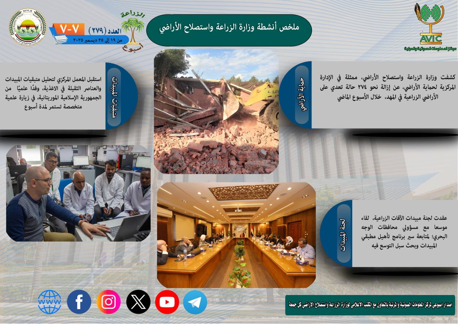 أصدر مركز المعلومات الصوتية والمرئية بوزارة الزراعة واستصلاح الأراضي، “الانفوجراف الاسبوعي” في نسخته رقم 279 حول الحصاد الاسبوعي لأهم أنشطة الوزارة، خلال الاسبوع الماضي في الفترة من 19 وحتى 25 ديسمبر الجاري، كما أصدر المركز ايضا ملخصا بالفيديو، حول انشطة الوزارة خلال نفس الفترة.