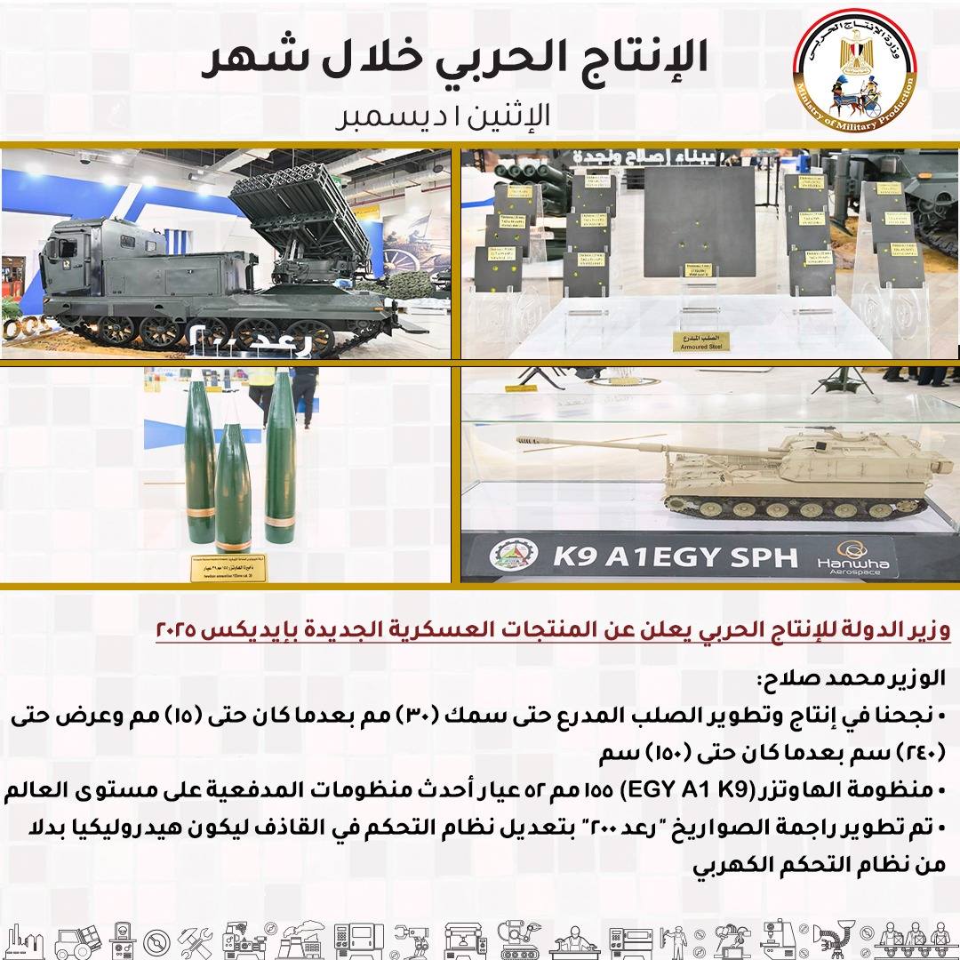 - يجب على كل مصري أن يكون فخور بهذه المنتجات التي تُصنع بأيدي أبناء الإنتاج الحربي لامتلاك القوة القادرة على حفظ السلام