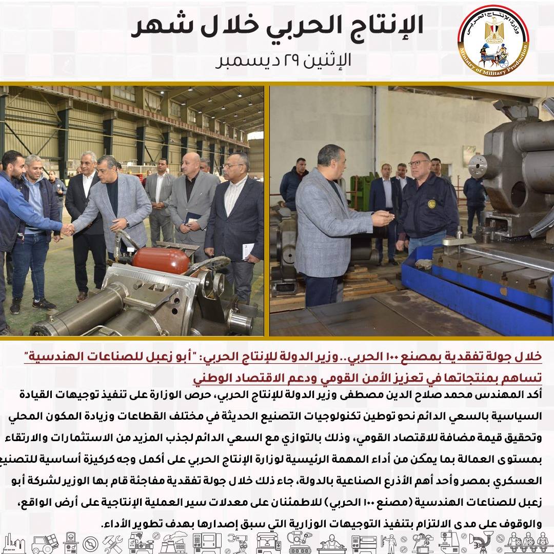 -خلال جولة تفقدية بمصنع 100 الحربي..