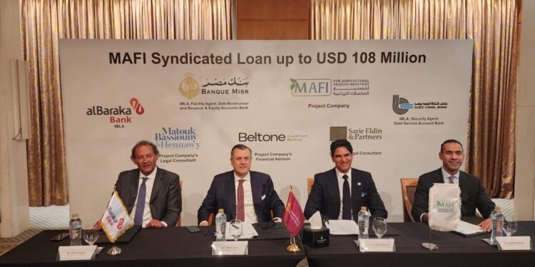 نجح تحالف مصرفي بقيادة بنك مصر مع بنك قناة السويس وبنك البركة-مصر في منح تمويل مشترك طويل الأجل بمبلغ 108 مليون دولار لصالح شركة ام ايه اف أي لتصنيع الحاصلات الزراعية MAFI ، بغرض تمويل جزء من التكاليف الاستثمارية الخاصة بالمشروع الممول والبالغة في حدود 180 مليون دولار أمريكي.