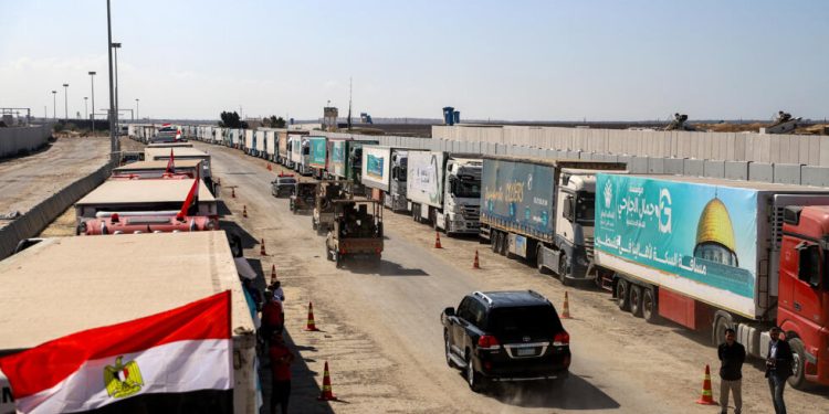 صرح مصدر مسئول بميناء رفح البري بمحافظة شمال سيناء، بأنه يتم إدخال 120 شاحنة مساعدات إغاثية وإنسانية متنوعة إلى الفلسطينيين بقطاع غزة، بينهم 10 شاحنات وقود وغاز.